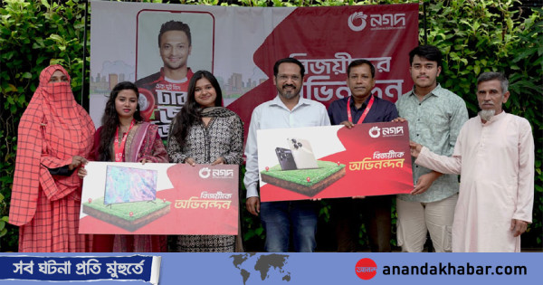 সম্প্রতি নগদের প্রধান কার্যালয়ে বিজয়ীদের হাতে পুরস্কার তুলে দেন প্রতিষ্ঠানটির সিনিয়র এক্সিকিউটিভ ভাইস প্রেসিডেন্ট ও চিফ মার্কেটিং অফিসার সাদাত আদনান আহমেদ এবং এক্সিকিউটিভ ভাইস প্রেসিডেন্ট ও ডেপুটি চিফ মার্কেটিং অফিসার মোহাম্মদ সোলাইমান।