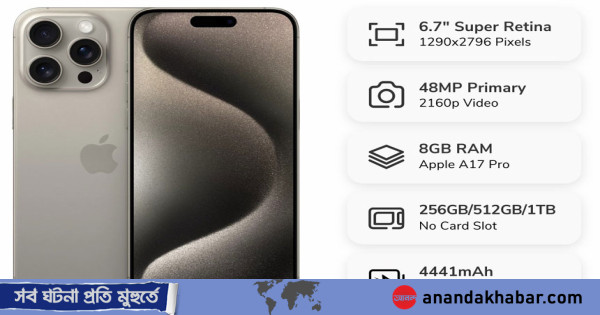 iPhone 15 Pro Max হলো অ্যাপলের নতুন স্মার্টফোন। এর স্পেসিফিকেশন ও ফিচারগুলো অসাধারণ। যারা প্রযুক্তি প্রেমী, তাদের জন্য এটি উপযুক্ত।